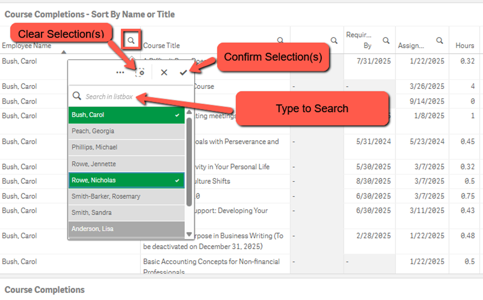 You can also use the interactive Search tool, clicking on data directly in the report columns to apply filters instantly.
