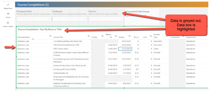 - Click inside the box that holds the course data until you see it is highlighted in a (green) colored frame.