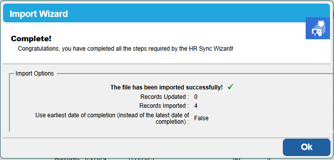 If the import is successful, a congratulations page will open and you can click OK to close out of the import.